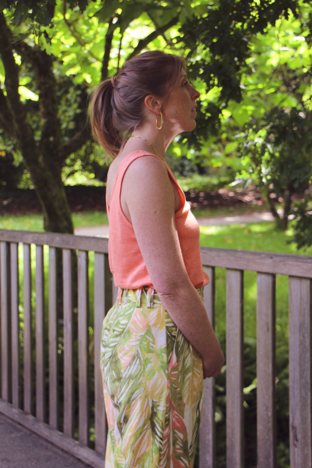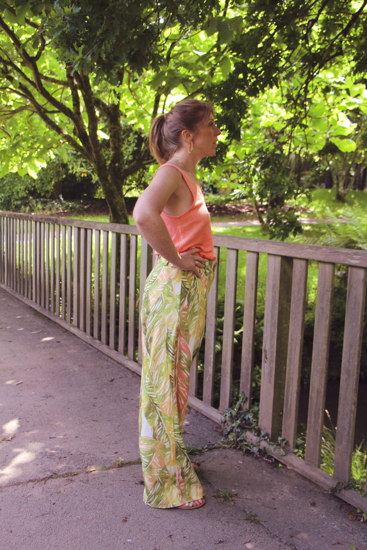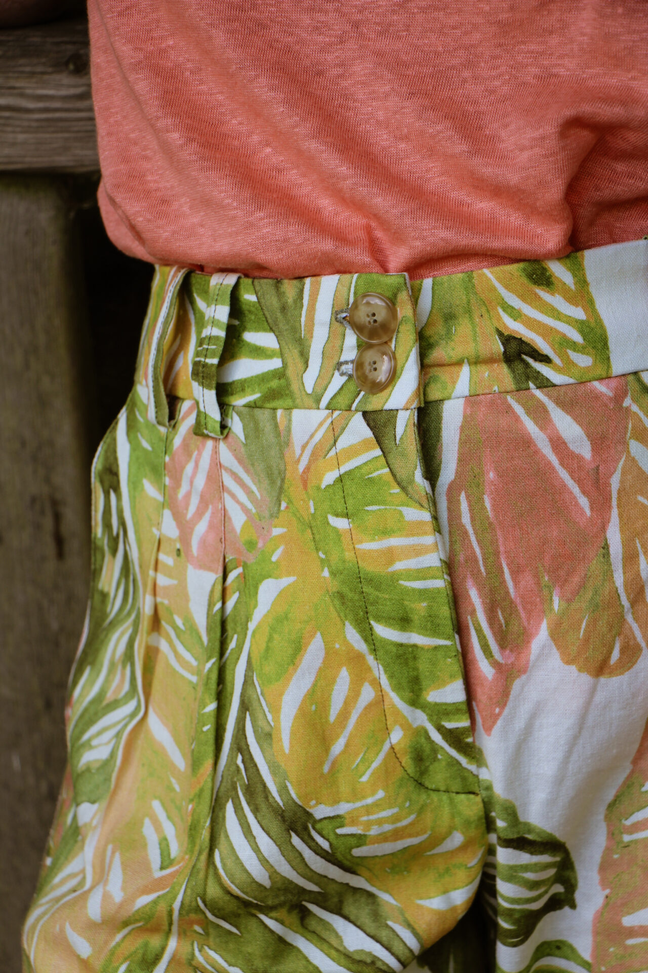 Le pantalon Zeus imprimé tropical est composé à 55% lin – 45% viscose.