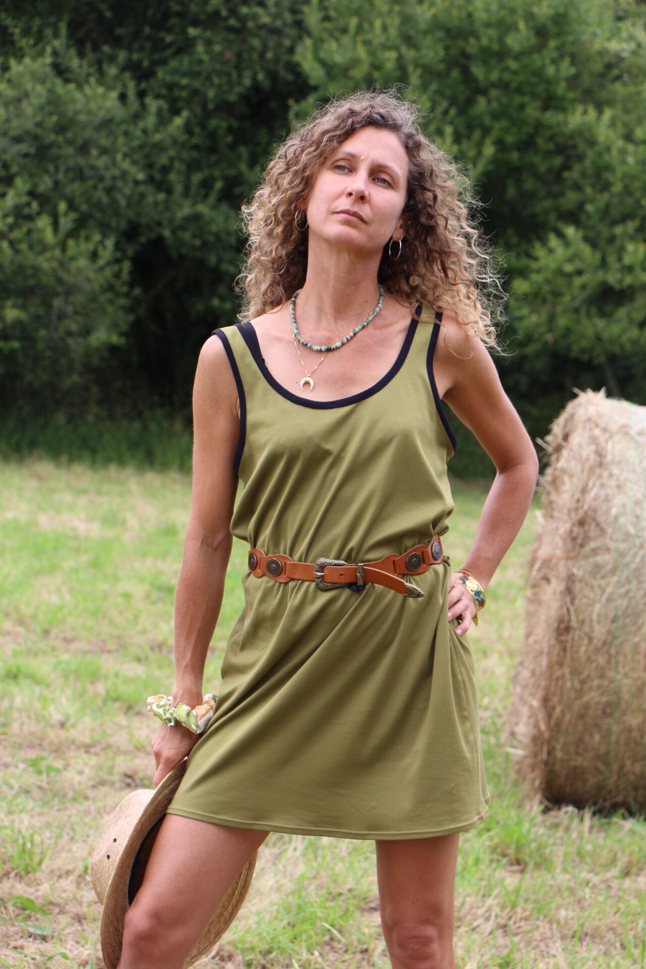 Confection : La Robe Savane kaki olive est entièrement confectionnée en France, dans un atelier en Bretagne.